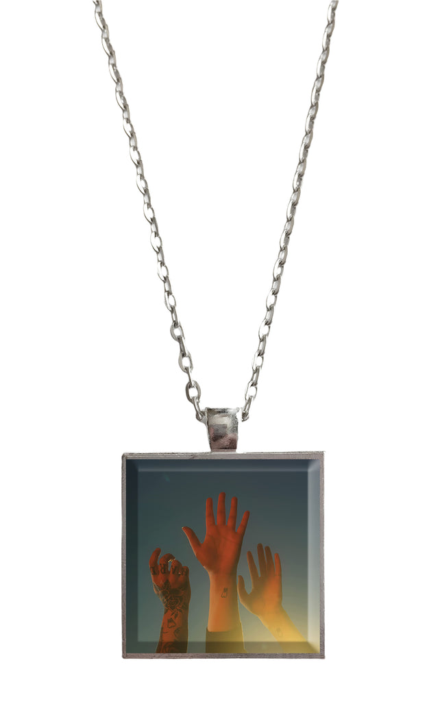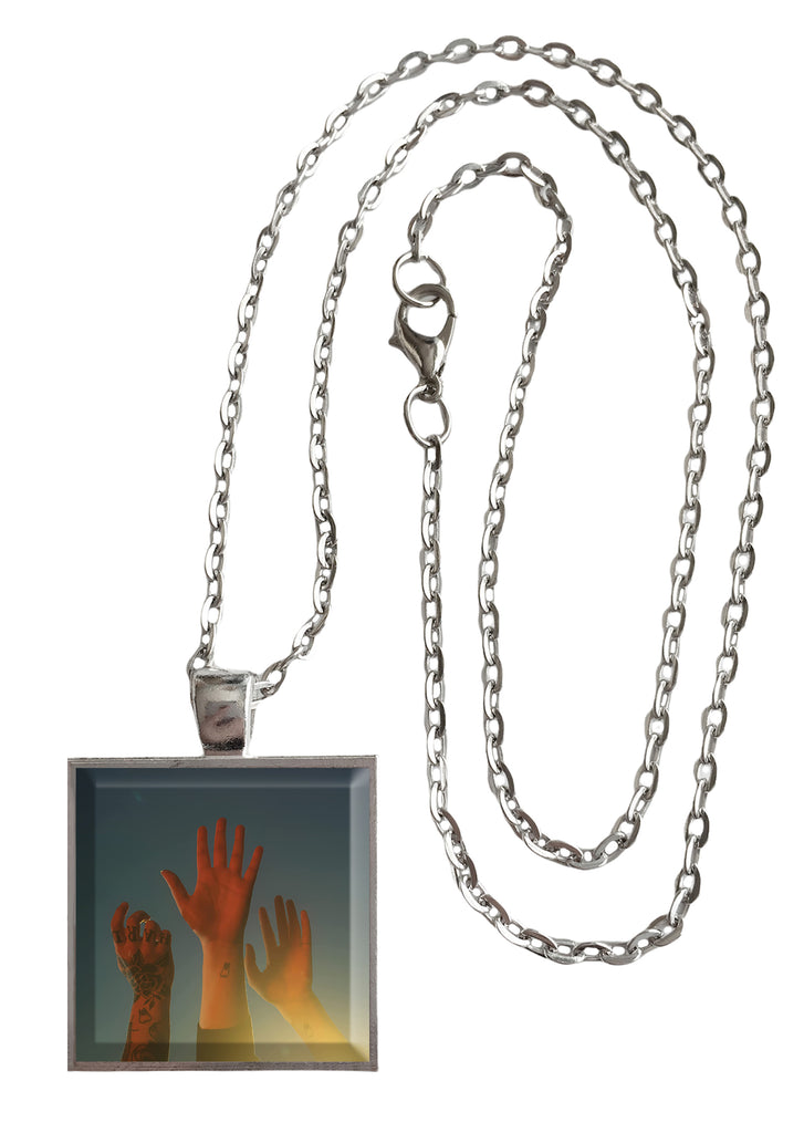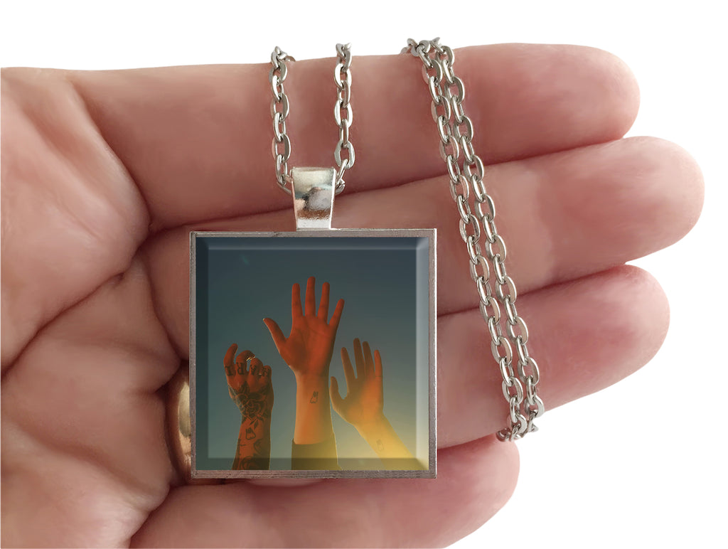 This is a necklace featuring cover art of the "the record" record by Boy Genius in a silvertone metal setting with glass. The album cover pendant is 1" and on a 20" long silvertone neck chain. The necklace is individually handcrafted in the USA. Please avoid exposure to water, such as swimming or showering while wearing. Show off your favorite group!