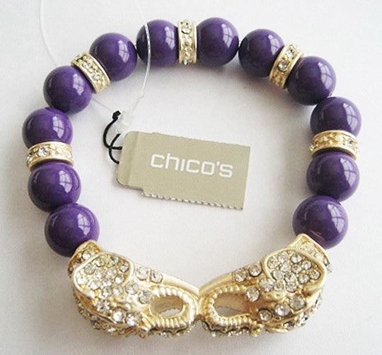 Purple Bead & Rhinestone Elephant Head Stretch Bracelet by Chico's